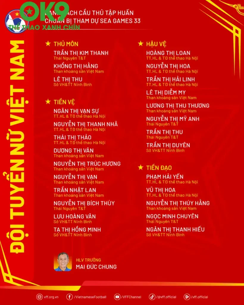 OK9 tin rằng, với sự chuẩn bị kỹ lưỡng và tinh thần chiến đấu quả cảm, “những cô gái vàng” của chúng ta sẽ tiếp tục mang về vinh quang cho Tổ quốc. Hãy cùng OK9 cổ vũ và đồng hành cùng đội tuyển nữ Việt Nam trên hành trình chinh phục SEA Games 33 nhé anh em!